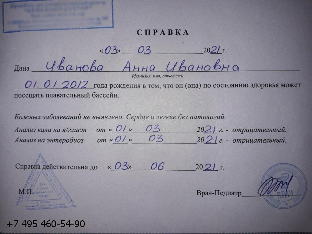 Купить справку в бассейн взрослому по доступной цене